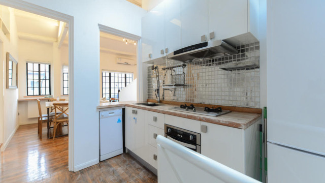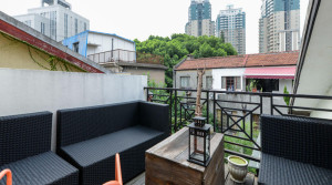 Mesurant 150m², ce logement de Huai Hai Middle Road vous propose 3 chambres, 2 salles de bain, 1 bureau et un petit balcon pour profiter de la vue sur le quartier de la Concession française.